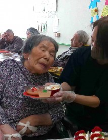 まずはデイサービスで最高齢のご利用者へお祝いの言葉と記念品の贈呈からスタート。