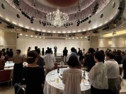 当日は、職員に加えて理事・監事・評議員の皆様にもご参加いただき、総勢約70名が集まりました。会場は、みんなに人気のラヴィータホールです。音響・ライトアップが素晴らしく、料理もとても美味しかったです。
