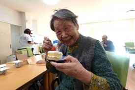 化粧をしたり、食べ物を食べたりするうちに、職員の顔が大変なことになり、ご利用者は大笑い!