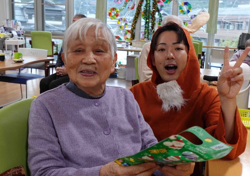化粧をしたり、食べ物を食べたりするうちに、職員の顔が大変なことになり、ご利用者は大笑い!
