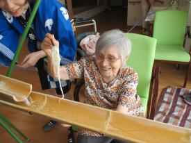 8月21日、28日の2日間、本館と新館の2階ホールで「流しソーメン」を行いました。