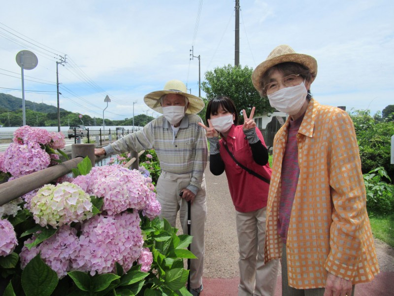 しばらく探索したあと休憩スペースでジュースを飲みながら、空を飛んでいるトンボや蝶々を眺めたりしてひと休み♪していると、お昼近くになっていたので春野高校~種間寺周辺のあじさいを見ながら帰路に着きました☆