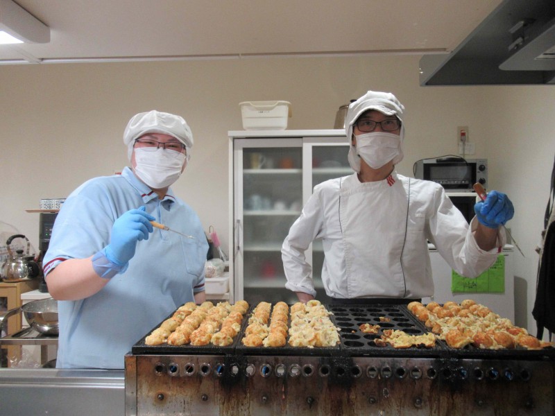 昼食にはお祭りの屋台にあるようなタコ焼き、焼きそば、フランクフルトなどが提供されました。